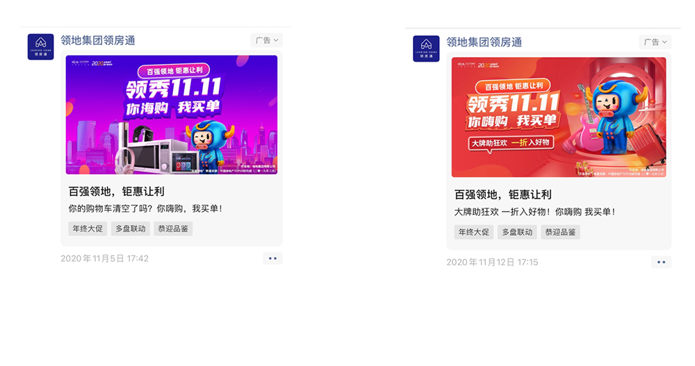01、朋友圈投放扩大公域传播影响力,并引流到私域流量池,两场线上游戏活动,做爆双十一!挤爆售楼处!