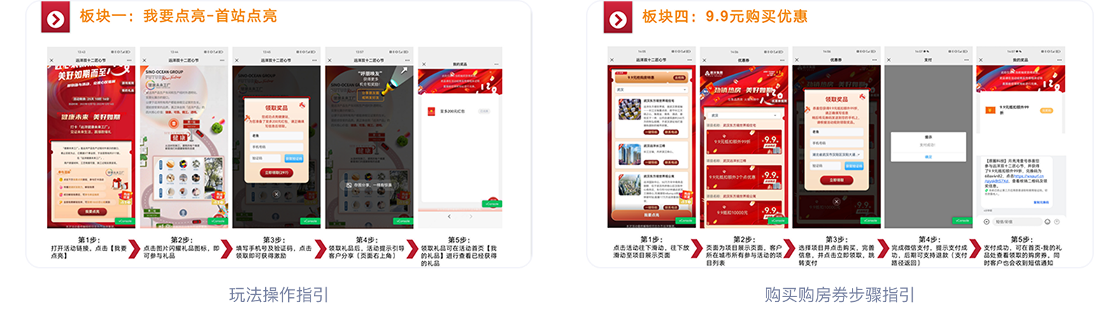 原圈为远洋集团的节点营销活动提供一站式的深度服务,为远洋 6 大事业部旗下的近70个项目提供了全面的策划方案。从活动设计、活动逻辑搭建、转化路径规划,到活动成本精细管理,助力远洋集团全面提升营销效能。为实现高效触达目标客户,原圈利用远洋企业微信社群进行精准推送。同时,通过活动营销 SOP 管理体系,统筹近千名工作人员,实现线上线下紧密联动,并对活动过程中的各项数据进行实时监控与分析,确保营销活动的每个环节都能精准执行。